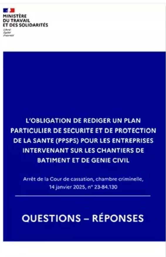 Le ministère du travail a publié le 18 janvier 2026 un document de type "Questions Réponses" concernant l'obligation (ou non) de rédiger un PSSPS.