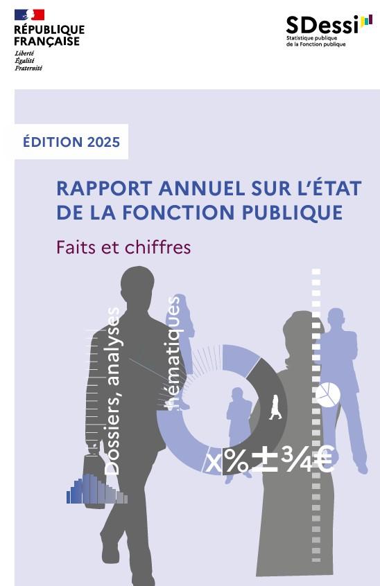 Le Rapport annuel sur l'état de la fonction publique, édition 2025, publié par la Direction générale de l'administration et de la fonction publique (DGAFP), dresse un état des lieux complet de l'emploi public en France. Au 31 décembre 2023, la fonction publique emploie 5,80 millions d'agents (soit 19,9% de l'emploi total), répartis entre la fonction publique d'État (2,57 millions), territoriale (1,99 million) et hospitalière (1,24 million).